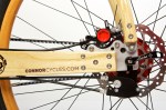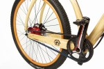 Connor Wood Bicycles founder Chris Connor points out that “Wood is a natural choice for bikes; it is inherently beautiful. You can do things with wood visually that you wouldn’t do with any other material and end up with a rolling work of art. It’s strong as well; think of its toughness and vibration dampening properties when used in sledgehammers, baseball bats, skis and snowboards. And when cared for, wood will last and stay strong for decades. The combination of the Kevlar reinforced wood, the bowed shape of the frame and the wooden handlebars, plus the big wheels results in a premium ride and smoothness unlike any other bike out there.”